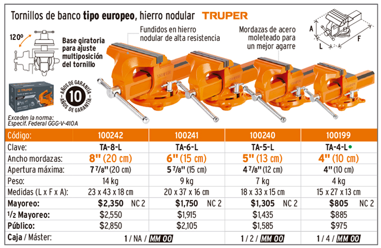 Tornillo de banco 6" tipo europeo de hierro nodular, TRUPER