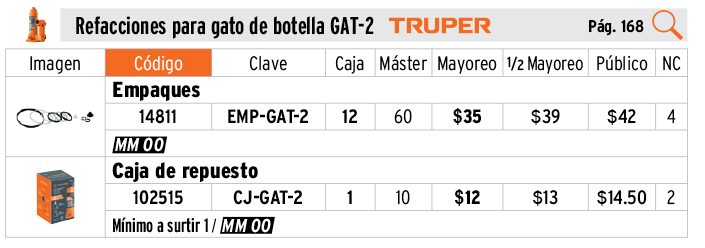 Caja de empaque de repuesto para GAT-2, TRUPER