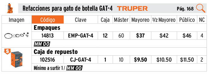 Caja de empaque de repuesto para GAT-4, TRUPER