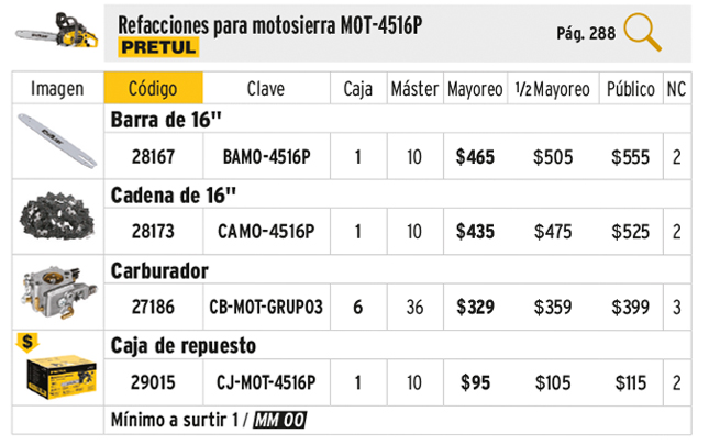 Caja de empaque de repuesto para MOT-4516P, PRETUL