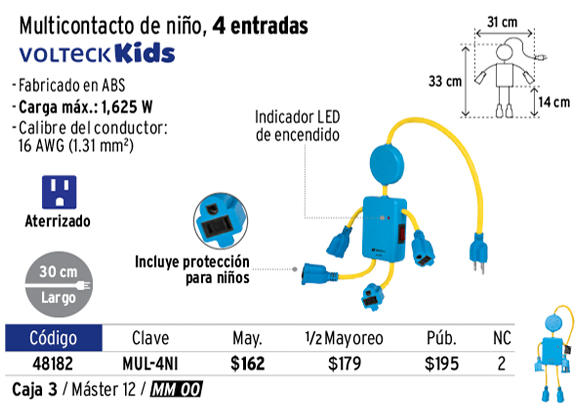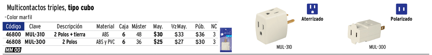 Multicontacto triple aterrizado, tipo cubo, VOLTECK
