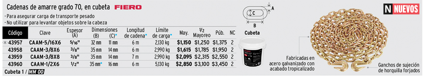 Cadena de amarre grado 70, 1/2" x 6.1 m