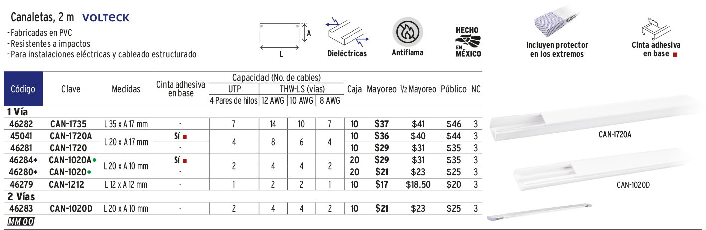 Canaleta de 2 vías 10 x 20 mm, con división, VOLTECK