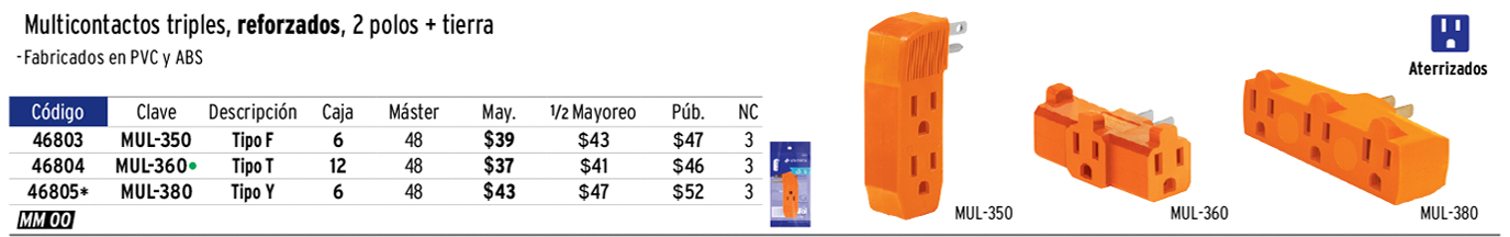 Multicontacto triple aterrizado, tipo "Y",reforzado, VOLTECK