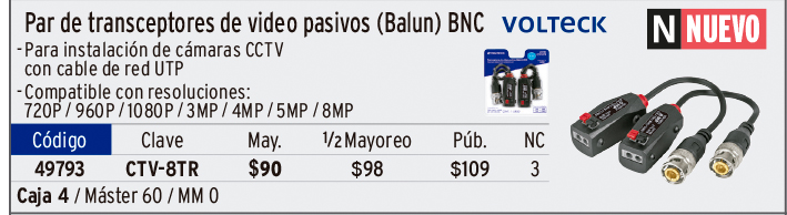 Par de Transceptores Pasivos Video Balun, hasta 8MP, VOLTECK