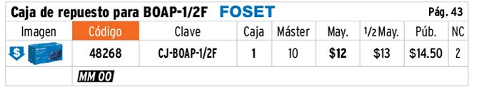 Caja de empaque de repuesto para BOAP-1/2F, FOSET