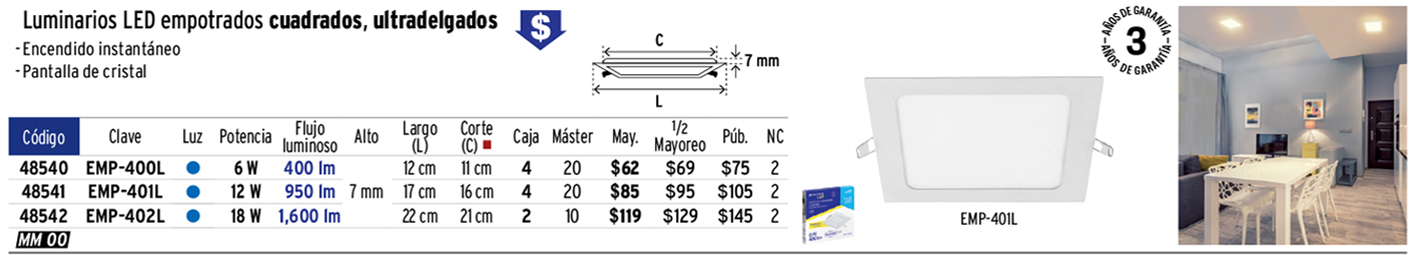 Luminario LED plafón 6W 6500K ultradelgado cuadrado VOLTECK