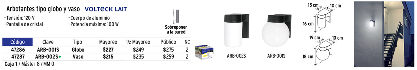Arbotante de pared tipo vaso, lámpara no incluida, VOLTECK