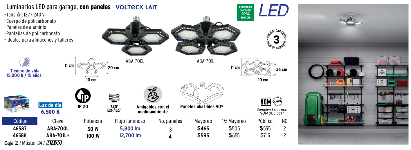 Luminario LED 50W 6500K con 3 paneles abatibles, VOLTECK