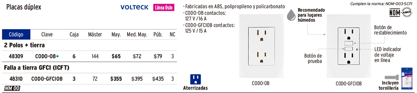 Contacto de sobreponer dúplex, 2 polos+tierra a granel