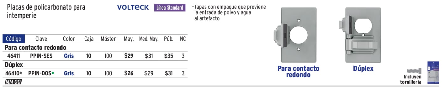 Placa contacto redondo, policarbonato,p/intemperie, Standard