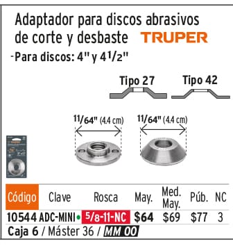 Adaptador para discos abrasivos 4" y 4-1/2", tipo 42, 5/8-11