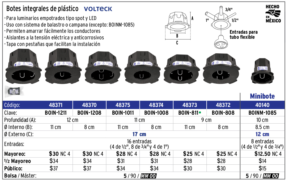 Bote integral de 8 cm, aro interno de 8 cm, VOLTECK