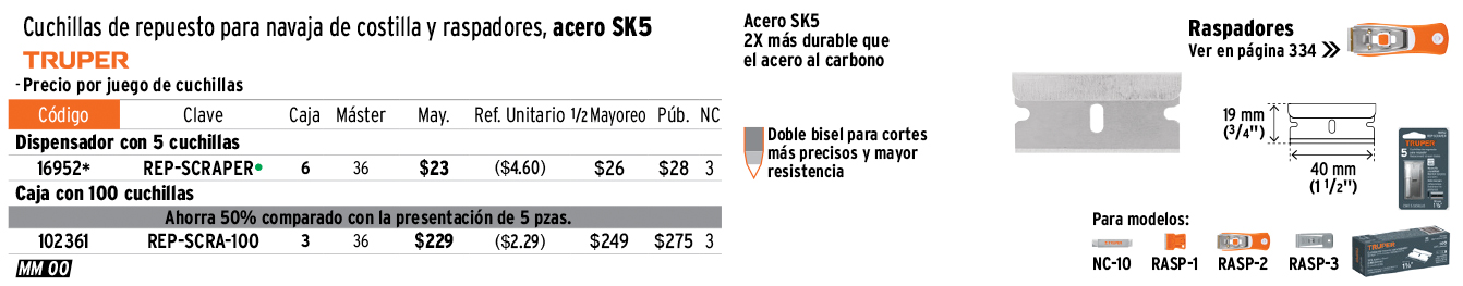 Caja con 100 cuchillas de repuesto para RASP-3,2,1 y NC-10