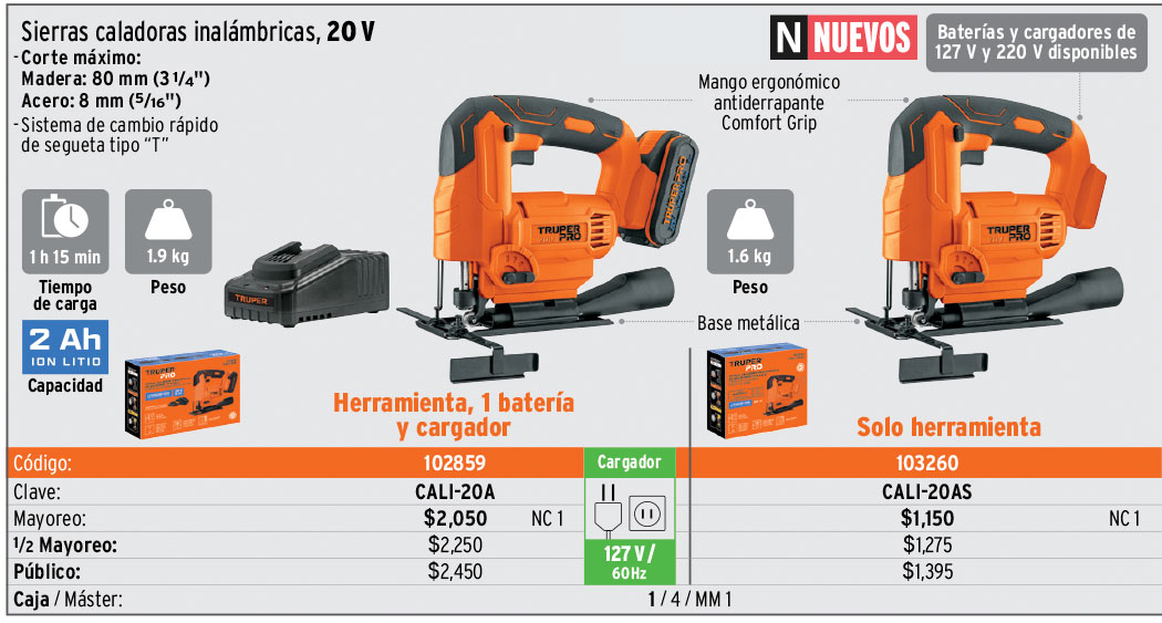 Sierra caladora 20V, 1 batería 2Ah, TRUPER PRO