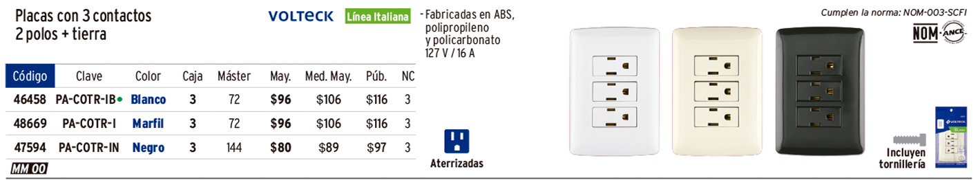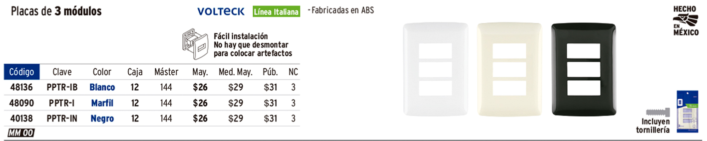 Módulo (tapón) ciego, línea Italiana, color blanco, VOLTECK