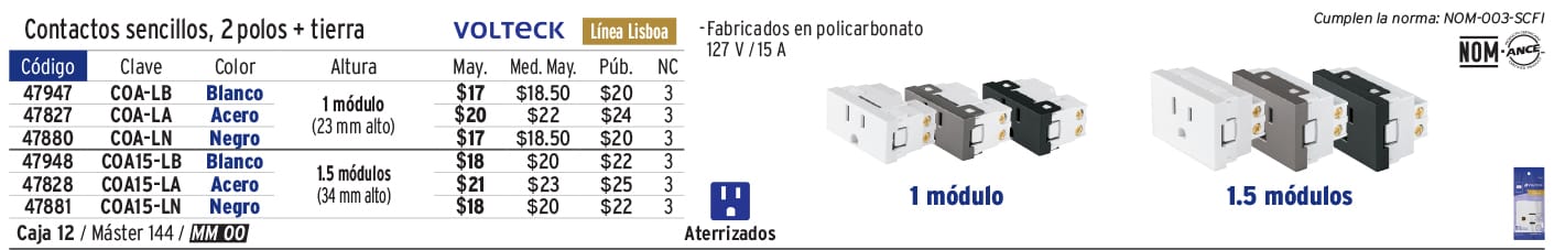 Contacto aterrizado blanco de 1.5 módulos, línea Lisboa