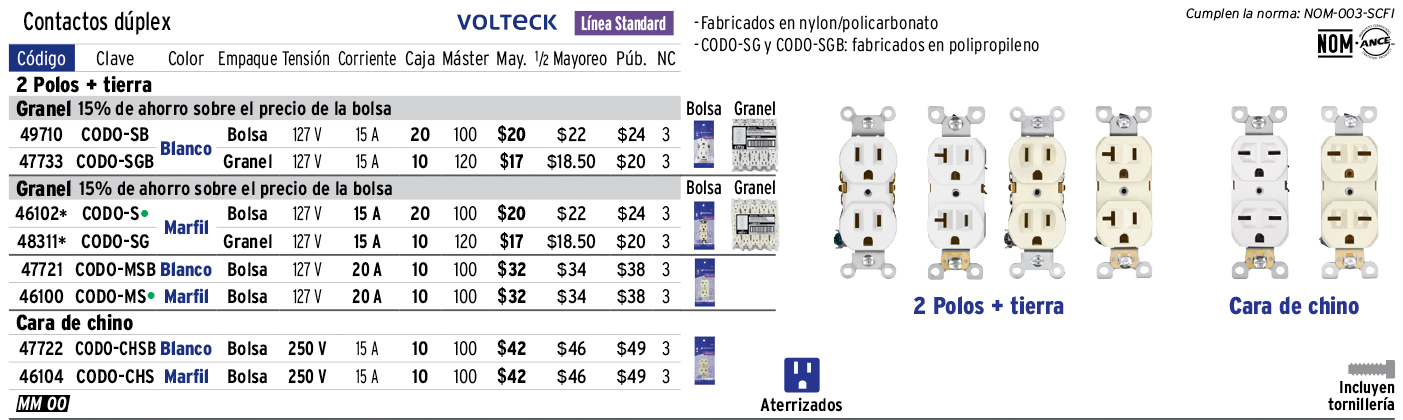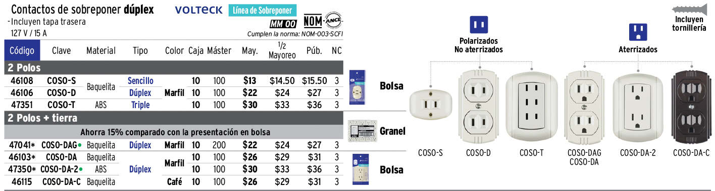 Contacto de sobreponer dúplex, 2 polos+ tierra, baquelita