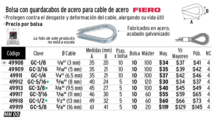 Bolsa con 5 guardacabos para cable de acero de 5/8", FIERO