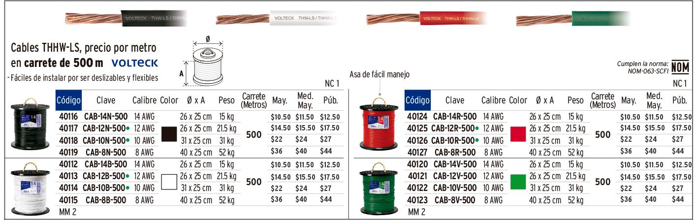 Metro de cable THHW-LS 10 AWG rojo en carrete de 500 m