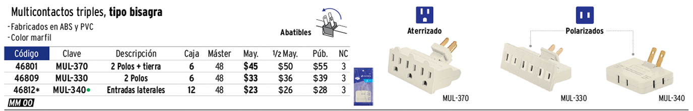 Multicontacto triple aterrizado, tipo cubo, VOLTECK
