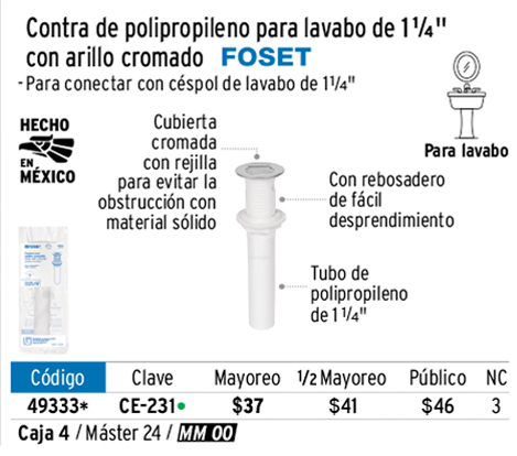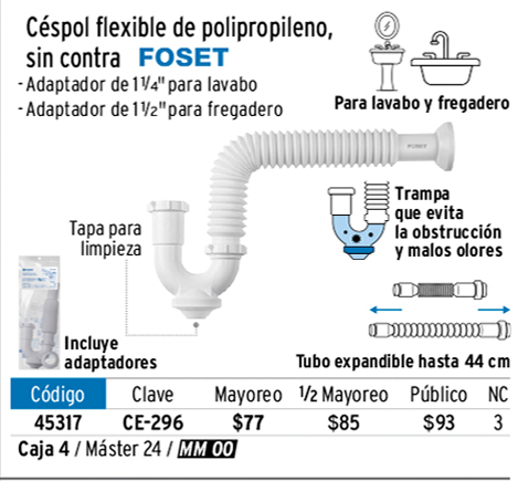 Céspol semi rígido de PP, para lavabo o fregadero, FOSET