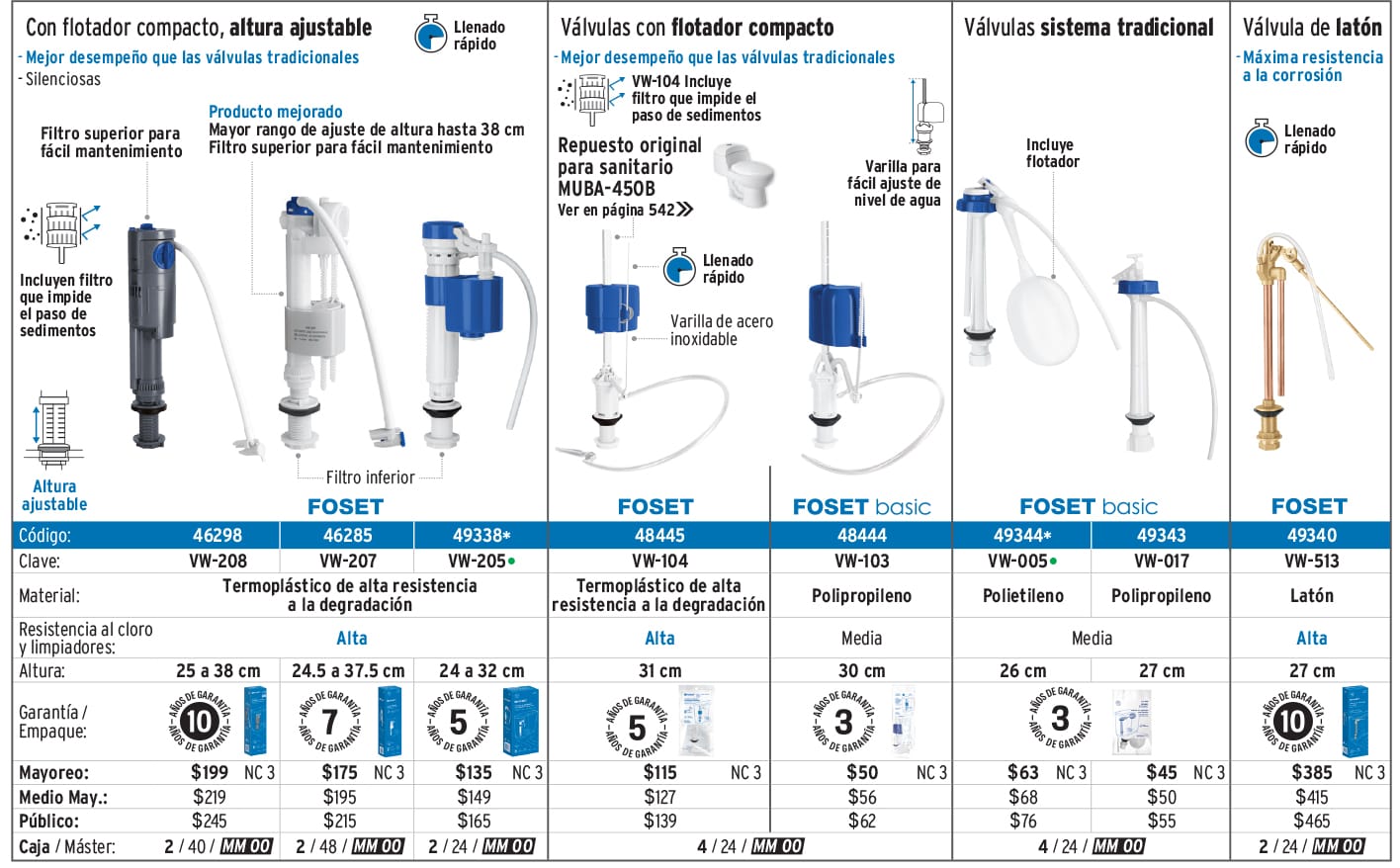 Válvula admisión tanque bajo, altura ajustable 24.5 a 37.5cm