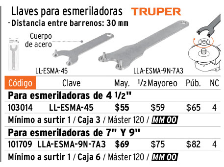Llave de repuesto para esmeriladoras de 4 ½", TRUPER