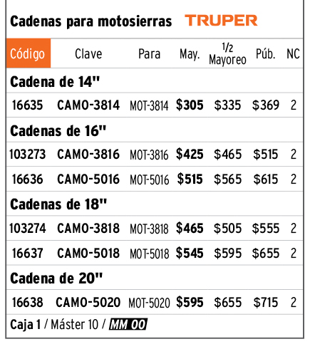 Cadena repuesto 16" para motosierra a gasolina 50cc, TRUPER