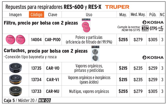 Bolsa con 2 cartuchos de repuesto, vapores orgánicos, TRUPER