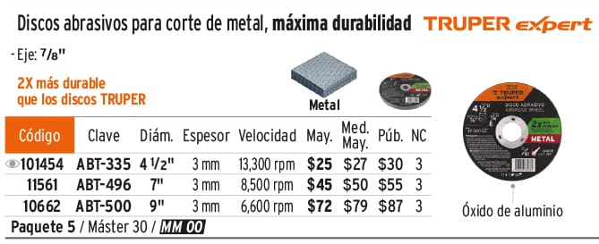 Disco para corte de metal 4-1/2" tipo 41, TRUPER EXPERT
