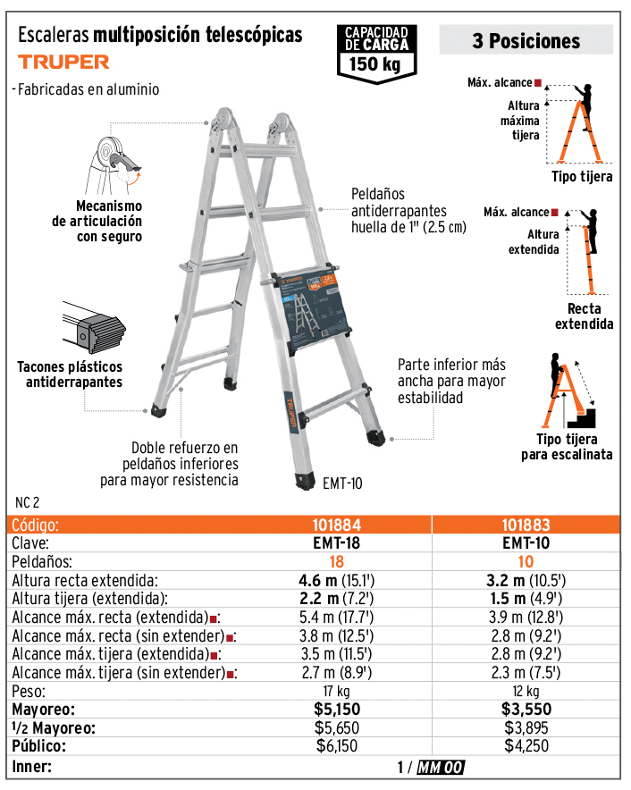 Multiescalera telescópica, 4.5 m, capacidad de carga 150 kg