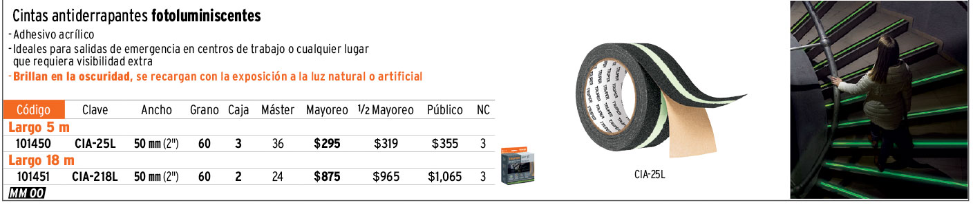 Rollo de 5 m cinta antiderrapante fotolumini. 50 mm abrasivo