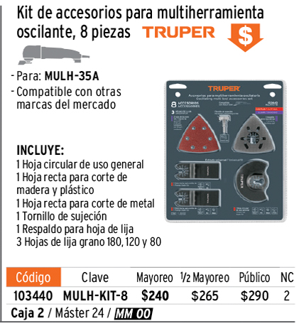 Kit con 8 accesorios para multiherramienta, TRUPER PRO