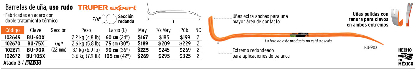 Barreta de uña de 7/8" x 90 cm, TRUPER EXPERT
