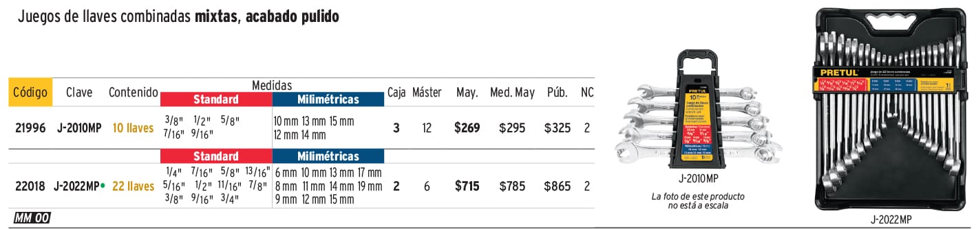 Juego de 10 llaves combinadas std y mm, PRETUL