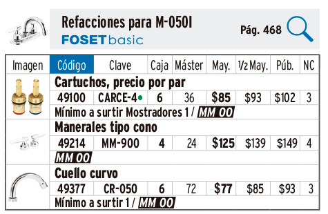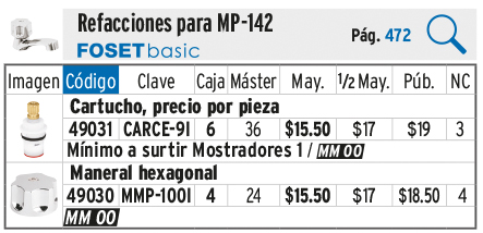 Cartucho cerámico para llave MP-142, FOSET