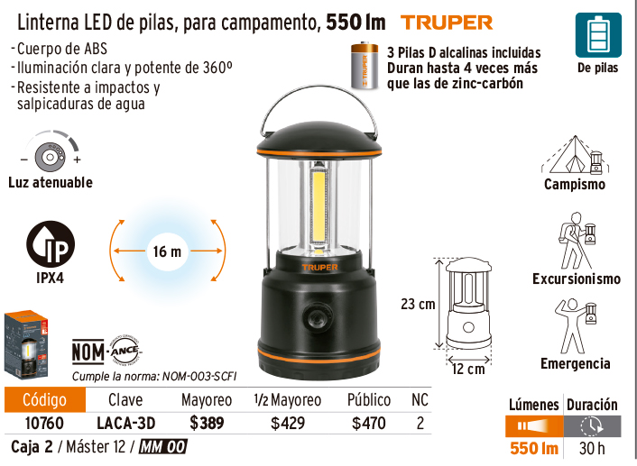 Linterna de LED para campamento, tipo farol, de Pilas 3 D