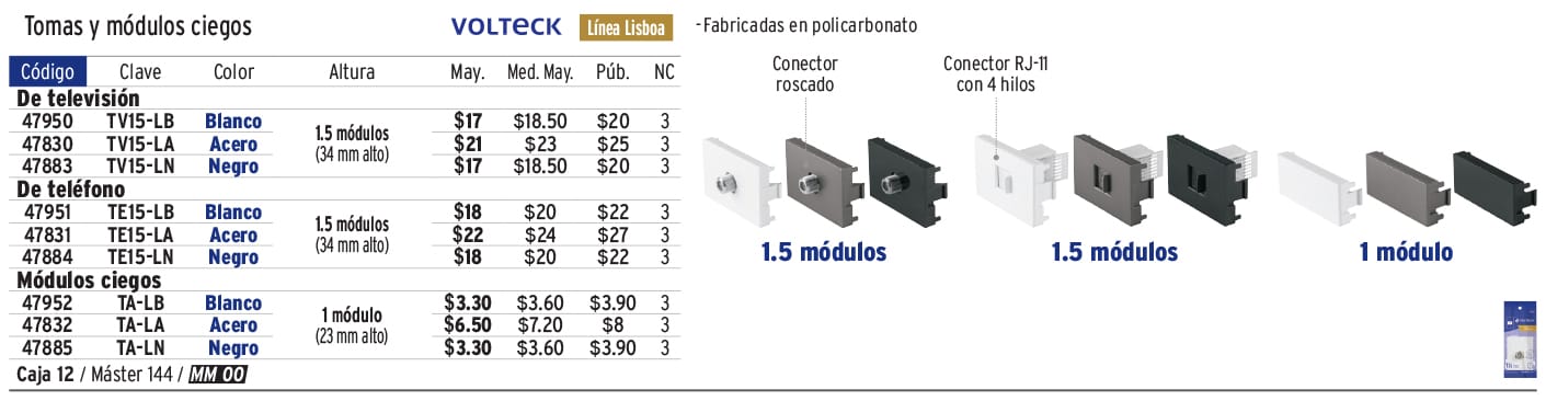 Toma de televisión negro de 1.5 módulos, línea Lisboa