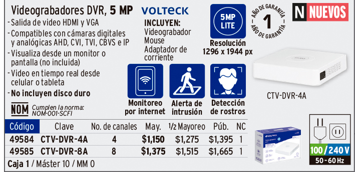 Video grabador DVR de 8 canales, 5MP, VOLTECK