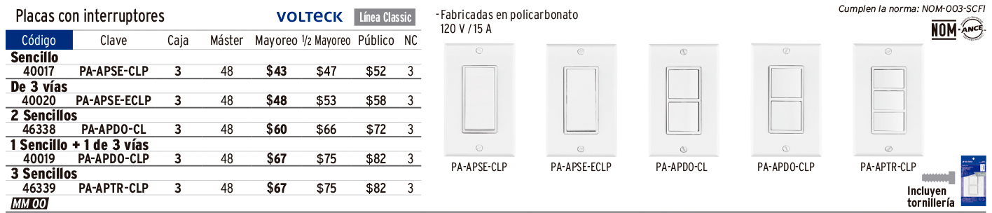 Placa armada con interruptor de tres vías, línea Classic