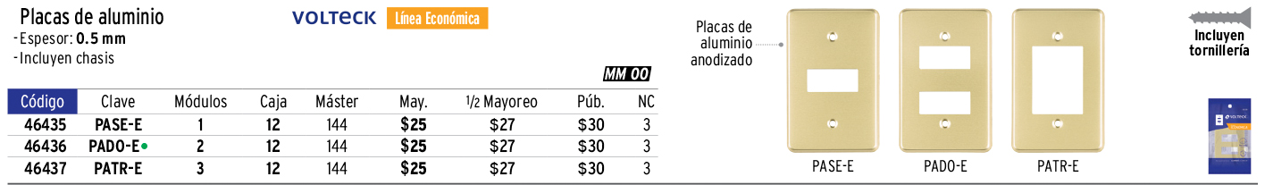 Placa 3 módulos, de aluminio, línea Económica, VOLTECK