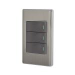 Placa armada acero 1 interruptor y 1 de 3vías 1.5mód,Lisboa