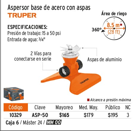 Aspersor base metálica, con aspas de aluminio, TRUPER