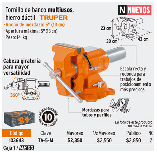 Tornillo de banco 5" multipropósito de hierro dúctil, TRUPER