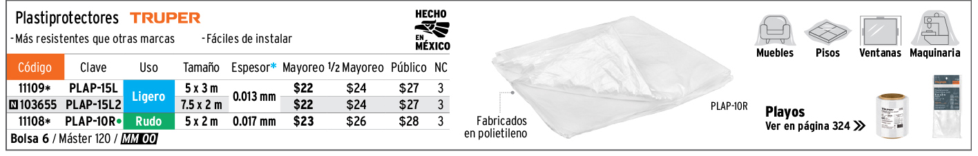 Plastiprotector 7.5 x 2 m, uso ligero, TRUPER