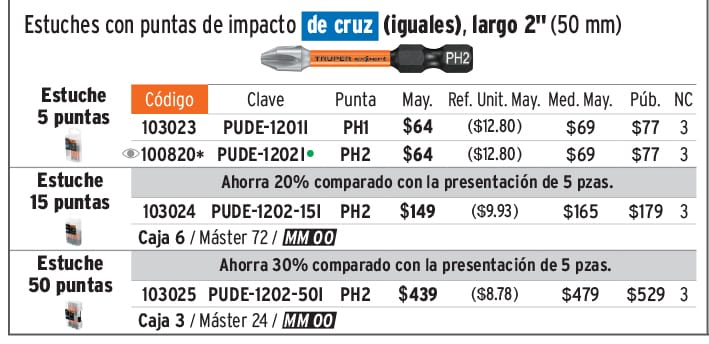 Estuche con 5 puntas de cruz PH1 de impacto largo 2"