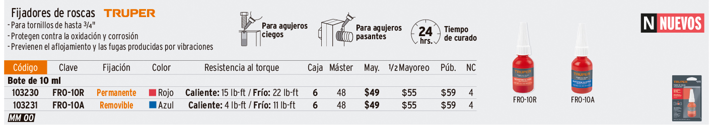Fijador de roscas, permanente, 10 ml, rojo, TRUPER