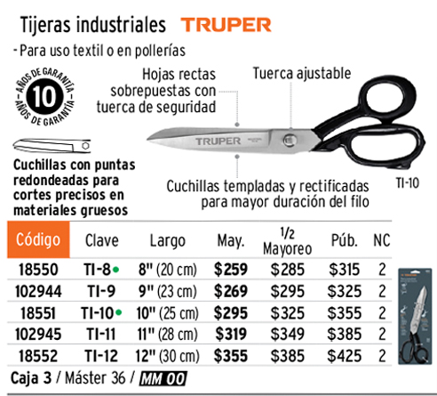 Tijera 9" industrial, acabado niquelado, TRUPER