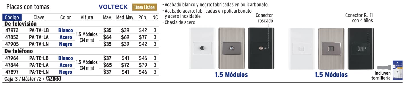 Placa armada contacto dúplex, 3 módulos, Toledo, BASIC